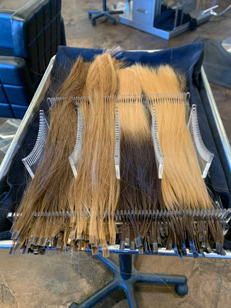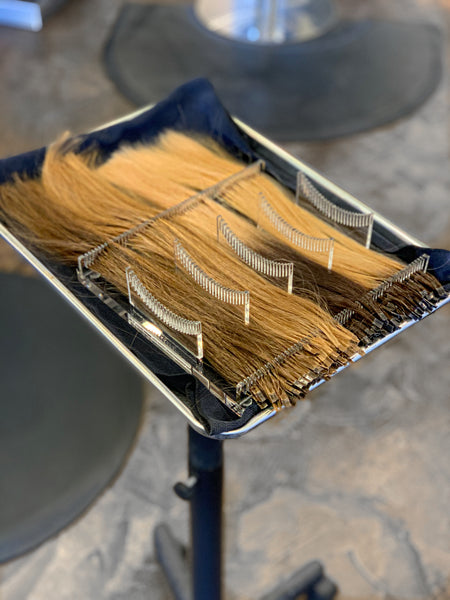 This makes it  Easy to Get through An Extension Application without Fuss and Tangles. This Stand is 10" x10" and fits on most Universal Salon Trays. It Includes Combs on 2 ends, and 5 Comb Center Dividers through the Center that are interchangeable for each custom client Extension Application. Hair can also lay across the top of the Diverders. Holds Over to 500 Full Size Standard Individual Strands. Great for Tapes, Wefts, Loose Hair for Braids or Dreads.